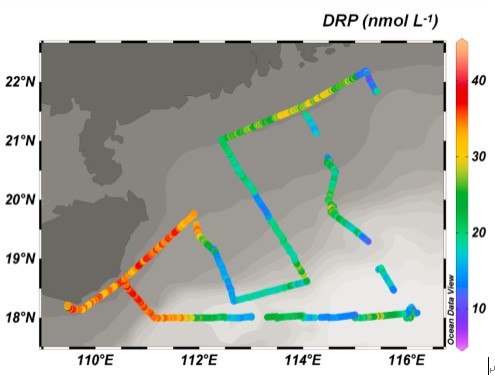 走航式痕量活性磷测定仪现场照(左)与南海表层溶解态活性磷测定结果(右)