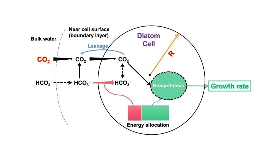 硅藻贡献了近一半的海洋总初级生产力;同时由于其相对大的粒径,硅藻成为海洋生物碳泵的最主要贡献者之一。过去普遍认为,大粒径硅藻比表面积小、光合作用更受CO2限制,故从CO2上升中获益更大;大粒径硅藻沉降速度快、生物碳泵增加,可以对大气CO2上升形成负反馈,缓解气候变暖。