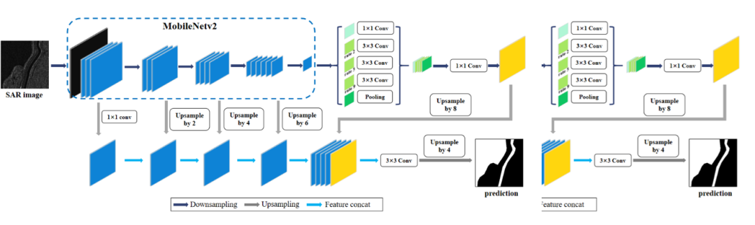 研究团队利用 “海丝一号”卫星在2021年拍摄的多景SAR洪涝灾害影像,建立了一个洪涝水体检测数据集,其中包含河流、水库、湖泊、水田等多种水体类型;在此基础上,团队提出了一种Modified DeepLabv3+语义分割模型(图1),实现了洪水淹没范围的快速、准确提取。