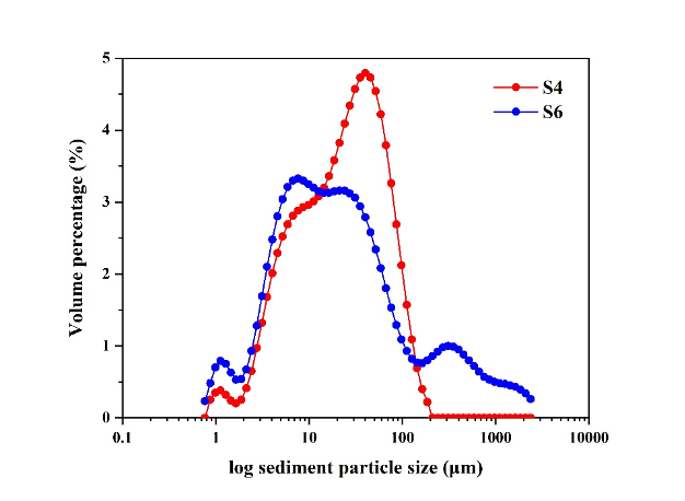 图3. 九龙江口上下游沉积物粒径分布图谱