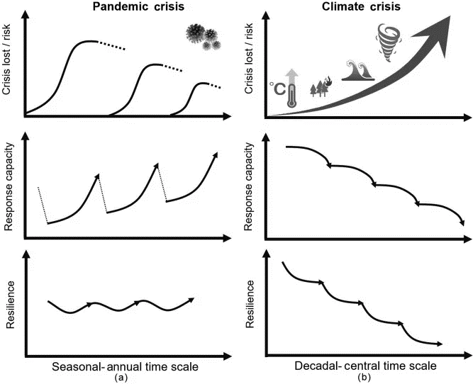 流行病危机(a)与气候变化危机(b)影响的对比
