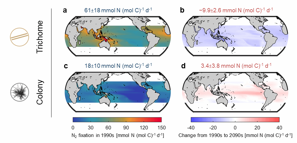 Luo, W., Eichner, M., Prášil, O., Zhang, F., Inomura, K., & Luo, Y. W. (2026) Colony formation sustains the global competitiveness of nitrogen-fixing Trichodesmium under ocean acidification. Communications Earth & Environment. 7, 300.
