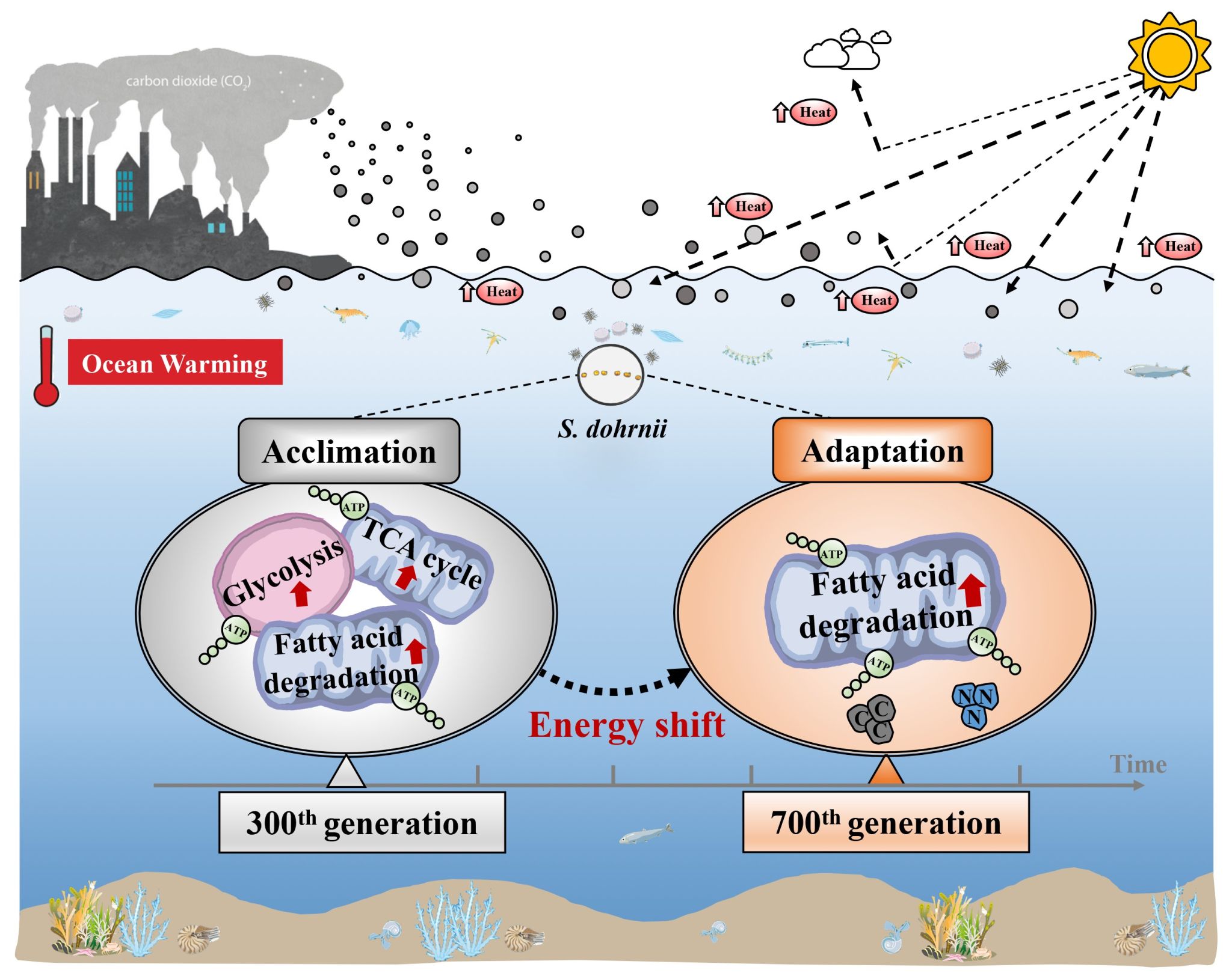 近日,厦门大学近海海洋环境科学国家重点实验室王大志教授团队在Environmental Science & Technology期刊上发表题为“Metabolic Adaptation of a Globally Important Diatom following 700 Generations of Selection under a Warmer Temperature”的最新研究成果,揭示海洋硅藻通过重新调整细胞内的能量代谢来适应海水升温,为海洋浮游植物响应和适应未来海洋暖化机理提供新认识。
