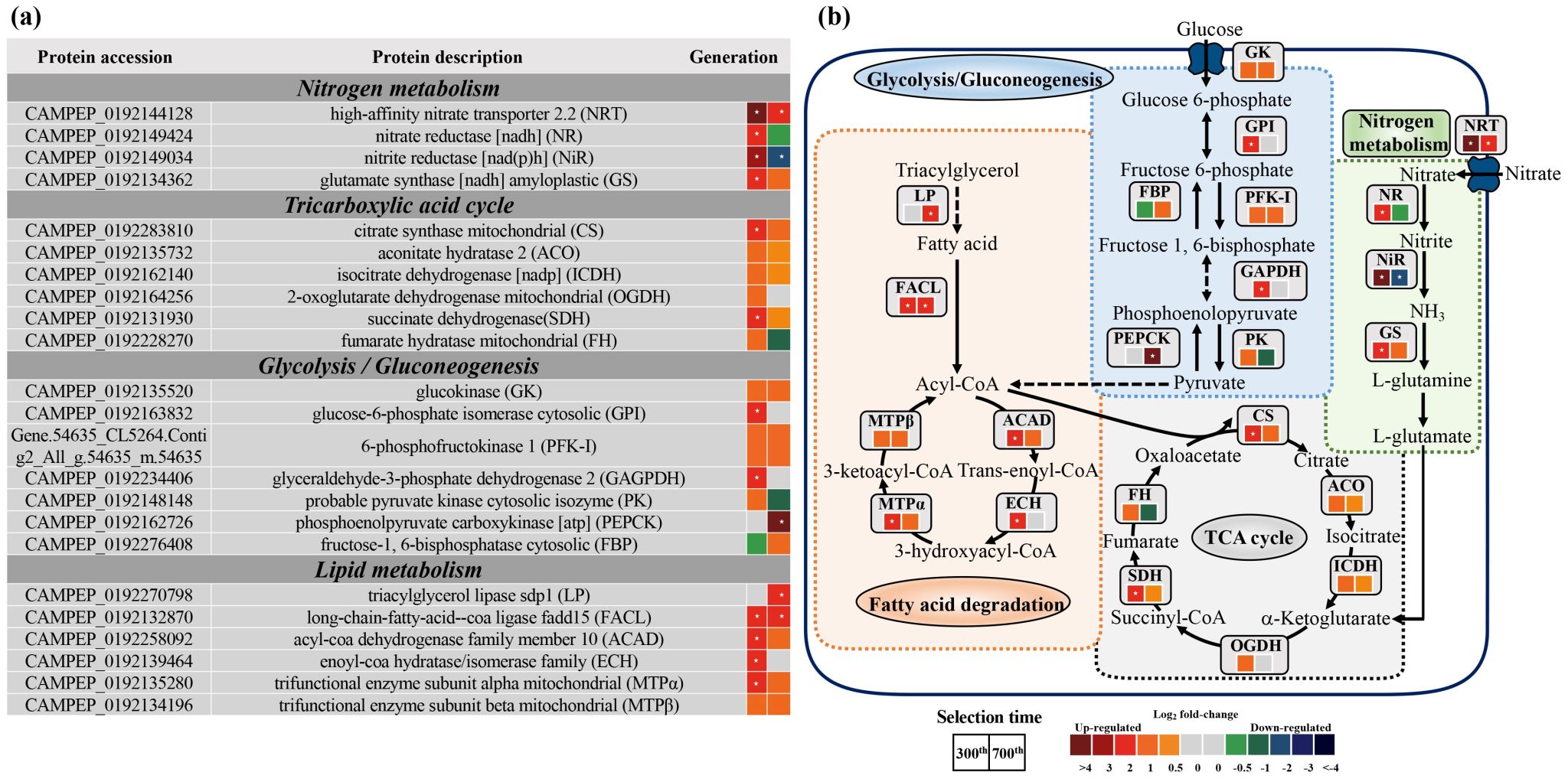 图3 经过300和700代升温培养后多尼骨条藻细胞内的关键代谢过程示意图