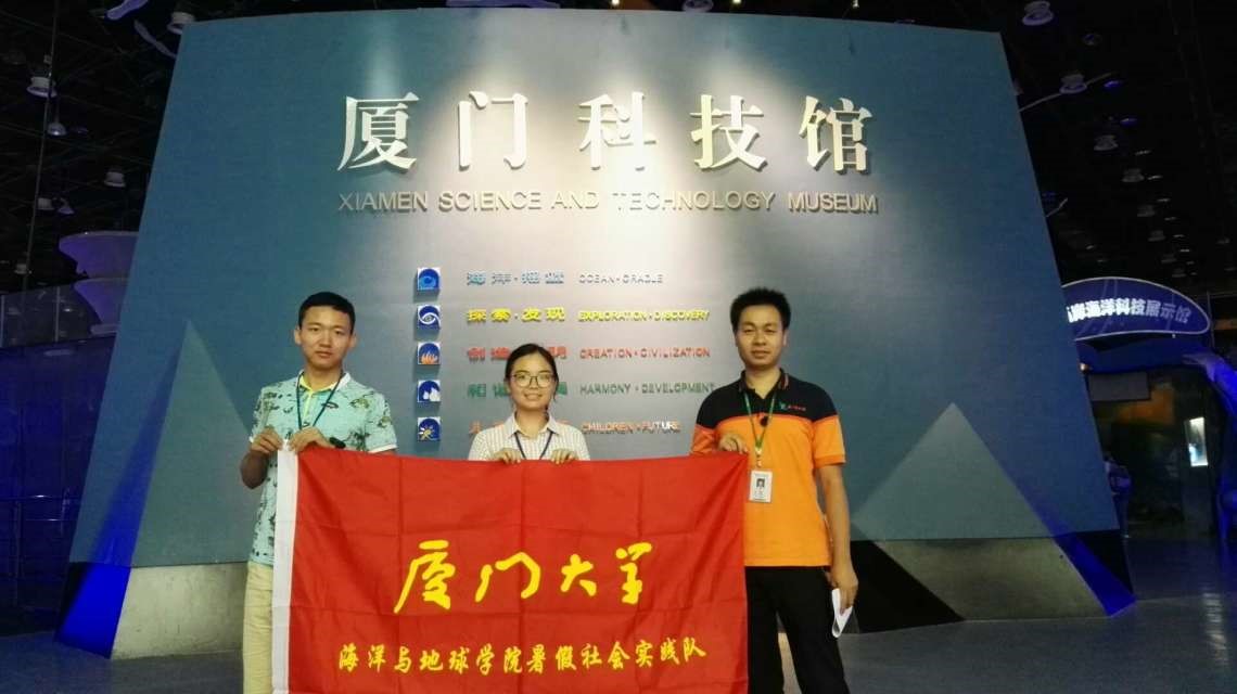 厦门市具有良好的海洋教育资源、海洋文化背景和学术研究基础,拥有海洋科普教育后援力量。在建设海洋强国进程中,厦门市的海洋科普教育工作仍有很大的提升空间。因此厦门大学普识敏思社会实践队(以下简称普识敏思实践队)以厦门市为样本,在今年暑假开展了中小学和科普教育基地海洋科普教育现状的调研。普识敏思社会实践队(Public Science in Museums and Schools, PSMS)由厦门大学10名本科生组成,队员来自海洋生物、海洋物理、海洋化学等专业。