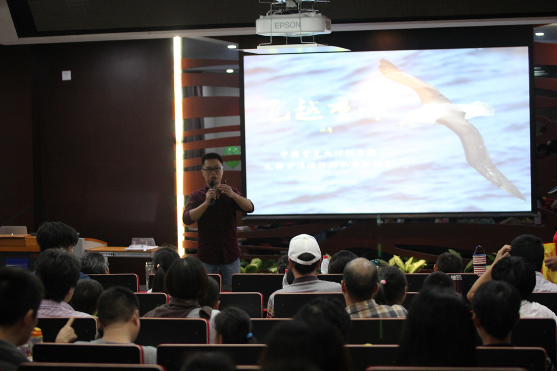 除此之外,开放日还安排了六场特邀科普讲座,厦门大学卢昌义教授生动地讲述了红树林的功能作用、现状、分布以及保护措施,并带来了事先采集的秋茄胚轴,激发了许多观众对红树林的兴趣;李海燕博士介绍了白敏冬教授用来防治船舶压载水带来的外来生物入侵所使用的羟基高级氧化技术;蔡明刚教授身着极地科考队的制服,以“北极!北极!”为题,讲述了雪龙号科考船上及在北极的科学工作和日常生活,还向小观众赠送了雪龙号的明信片;热爱鸟类的山鹰(朱敬恩)博士介绍了诸多只能在中国见到的海洋鸟类,分享了出海观鸟的趣事,在他的眼里,观鸟这事儿从来不让人失望;董云伟教授介绍了潮间带的生物及其生活习性,用小视频生动地展现了忙碌的潮间带环境。他们热情与市民分享自己的海洋故事,从不同视角为听众呈现了海洋科学的魅力。能容纳200人的报告厅里,几乎场场爆满,互动踊跃,常常听见观众的互动和惊叹。