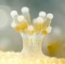 虫黄藻在海水中自由生活的时候有两条鞭毛,能够借助鞭毛运动。而与珊瑚虫共同生活的虫黄藻鞭毛脱落,不再自由运动,而是宅居在珊瑚虫体内(内胚层)。