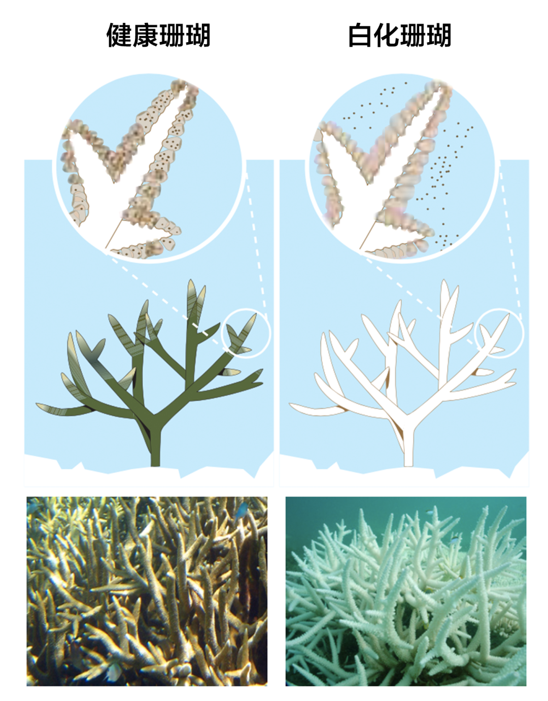 · 环境变化产生的压力可能造成共生关系破裂,进而造成珊瑚白化