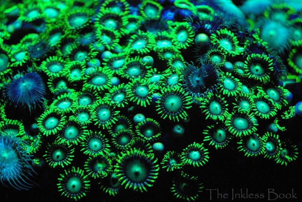 荧光色素蛋白在日常光线下不一定可见,不过在紫外灯照射下它们呈现出鲜艳的颜色(来源:Salwater Guy)
