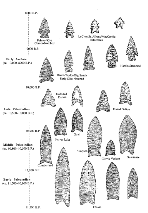 他们使用的工具,我在左图给大家呈现出来的是两面打制的、非常薄的一些矛的枪头。我们称它为克洛维斯枪头(下图)。