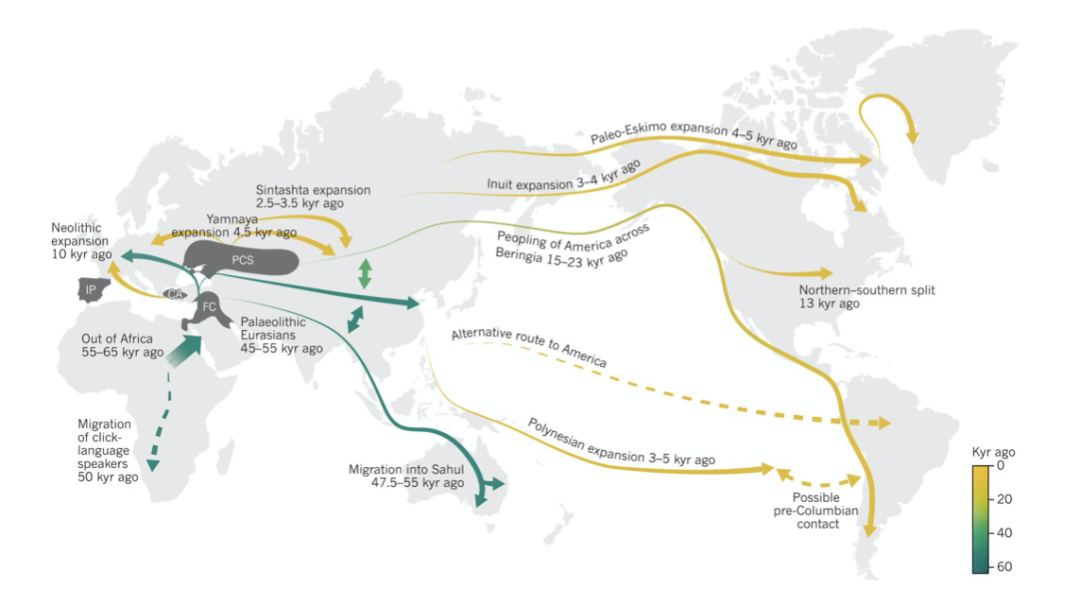 我们整个人类沿着海岸线迁徙这样一条路线,不但有考古学证据的支持,同时也有非常多的基因研究来支持这个观点。