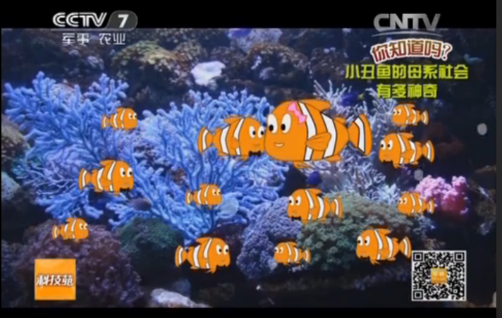 其实,小丑鱼是群体动物,也是雌雄同体且雄性先熟鱼类, 即首先发育成雄性, 经过一定的环境及种群演变, 最后转化为雌性。在小丑鱼的母系社会中,同一个海葵上共生生活的小丑鱼在繁殖上遵守着严格的等级差别。这种等级差别建立在个体大小的基础上,通常由一只体型最大的“女王”带领一只具生殖能力的雄鱼,其他成员包括无生殖能力的其他中等体型的成鱼和幼鱼。
