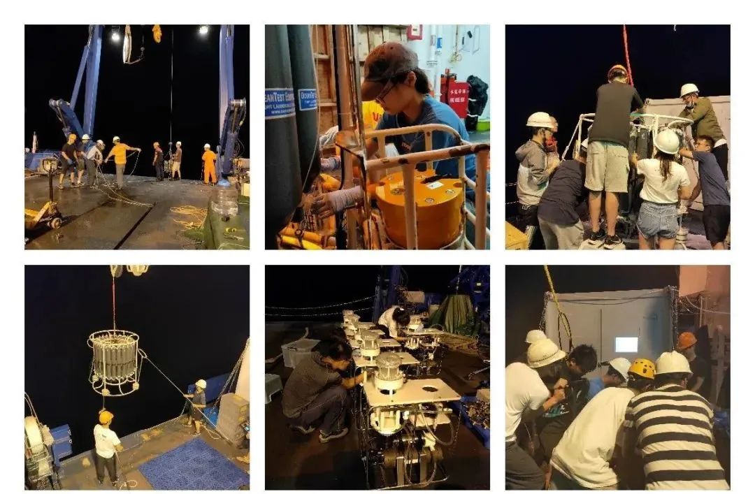 。这里放一些白天和晚上的工作照给大家瞧一瞧海洋科考都在忙活些啥。