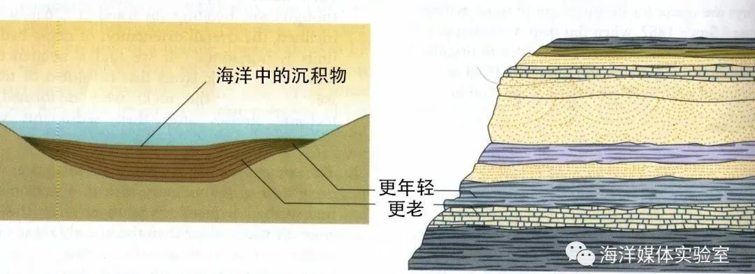 年龄较老的沉积物在下,较年轻的沉积物在上