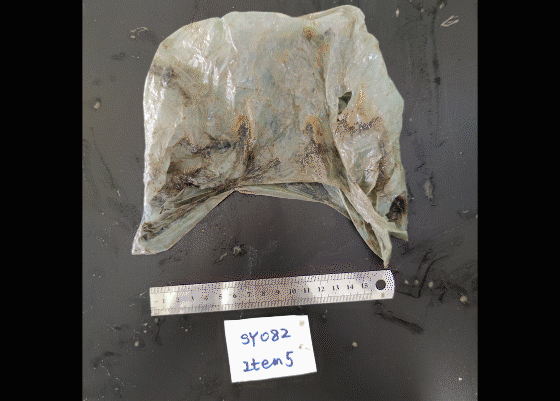 此前的研究中发现南海海沟深处积聚的大型塑料堆中,每平方公里的大塑料高达5万多件。少数塑料表面的文字可见,使用多种外语印刷,这可能意味着在我国的海域中存在外来的塑料垃圾。