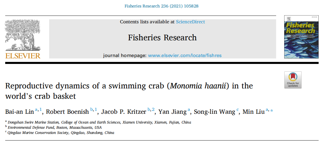 刘敏教授和她的团队为此项目开展了拥剑梭子蟹的生物学研究以及捕捞监测,结合市场价格动态,建立了以生物学-经济学结合的分析模型,从而优化渔业管理。