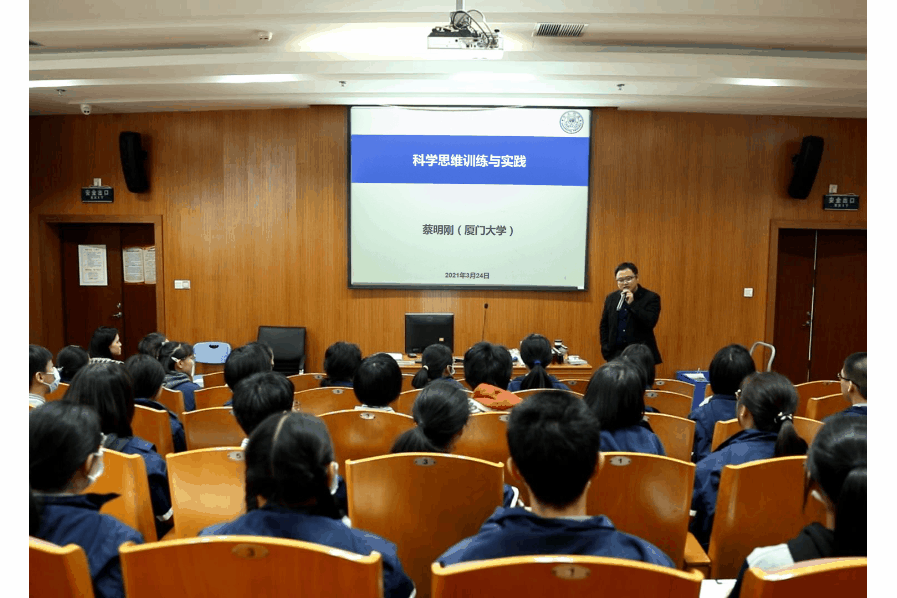 2021年3月24日下午,厦门大学百名教师进中学,创新校本课程《科学思维训练与实践》于厦门第一中学第3报告厅正式开讲。主要授课教师,一位是厦门大学海洋与地球学院教授,闽江传播学者,极地科学家蔡明刚老师;另一位是中国海洋科学卓越教育伙伴计划(COSEE-China)(厦门大学)Emily King老师,她曾多次负责开展厦门大学“海洋科学开放日”等科普活动。