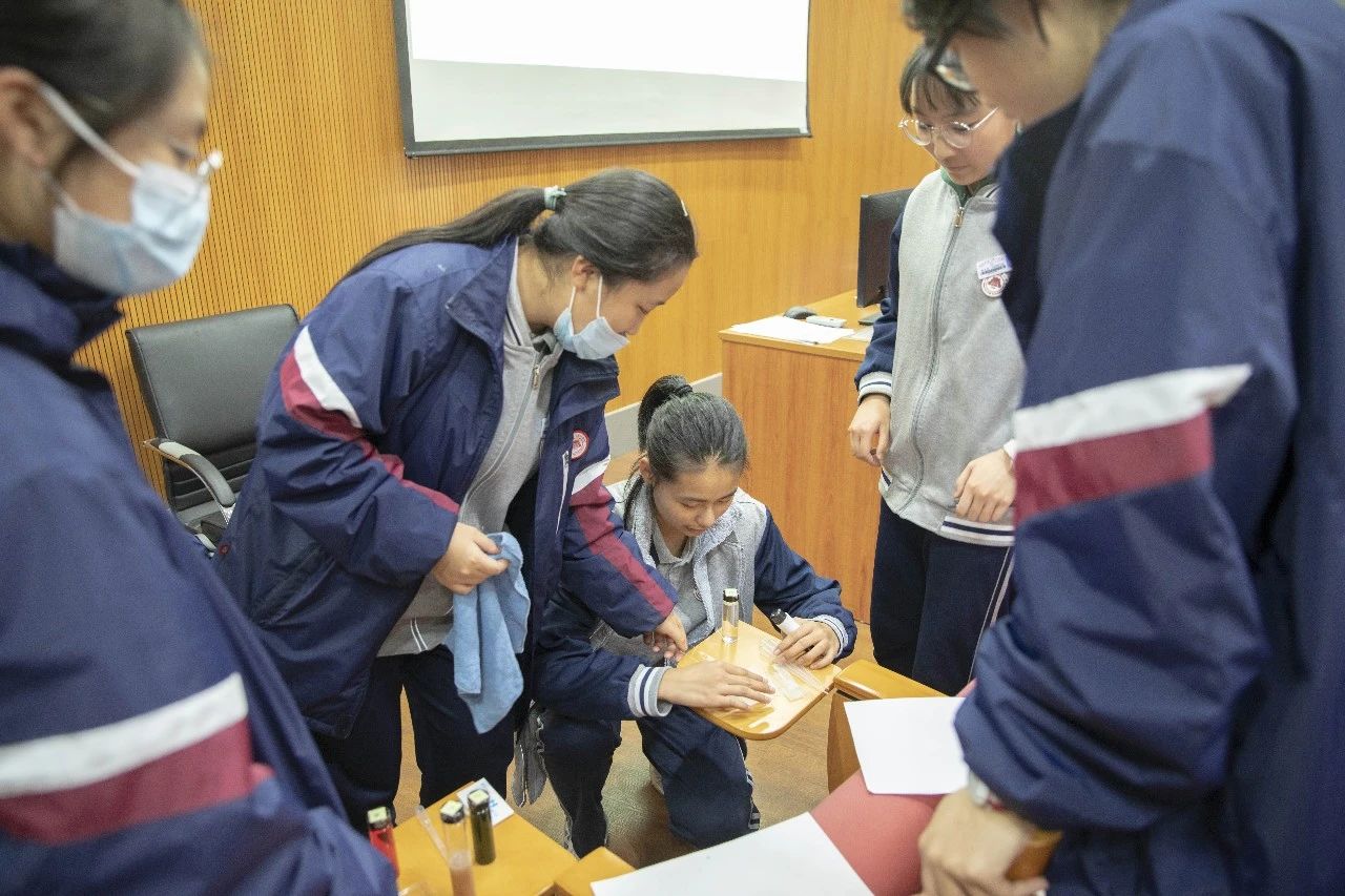 高一(13)班的蔡乐宜同学和孔德菊同学课后说,“本来以为这节课会讲授理论知识多一些,但是没有想到一开始就实验,有很多合作的机会,非常的惊喜,特别有意思。”