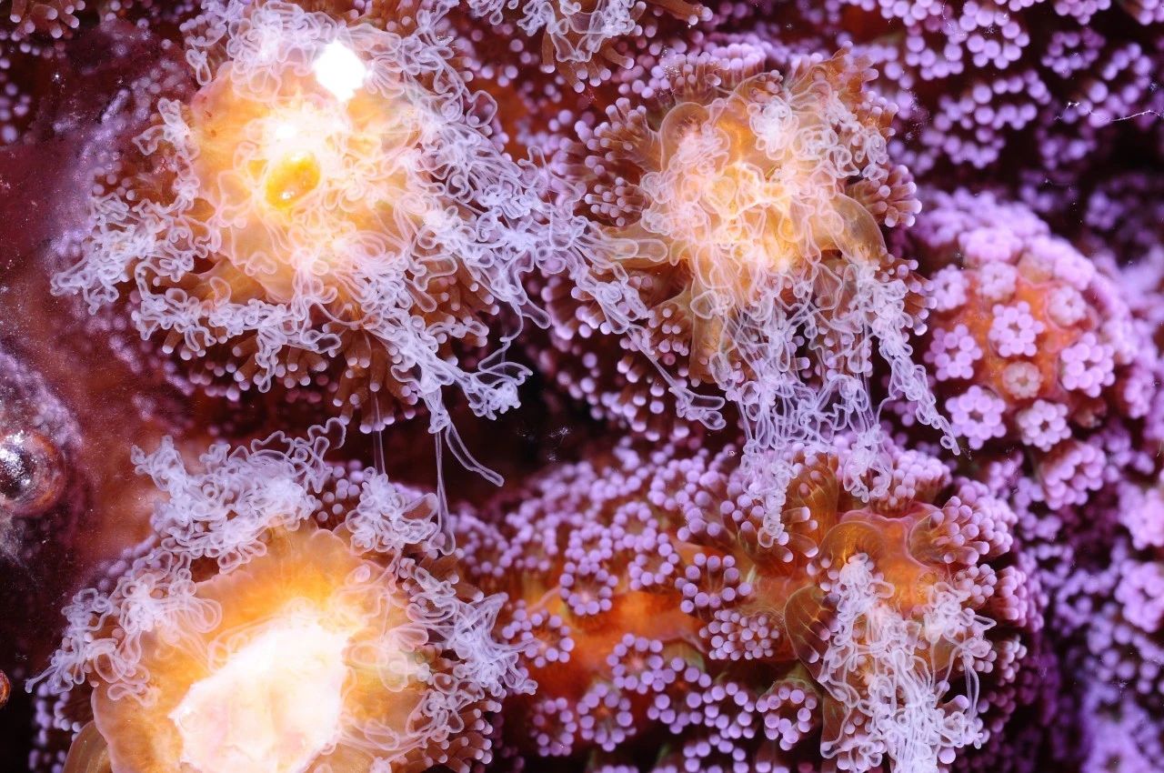 一提到造礁石珊瑚,就不得不说起它们的肉食本性了。甲壳动物、毛颚动物和许多动物幼虫都是它们的心头好。这些珊瑚捕捉浮游动物的能力很强,它们用黏液捕获猎物,再利用触须上的刺细胞进行毒素攻击,最后用纤毛将麻痹的猎物送进口中。