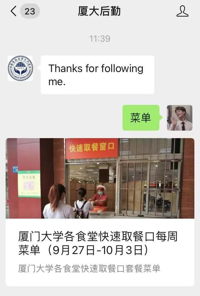 >>> 厦大后勤公众号后台 轻松获取每周菜单~ <<<