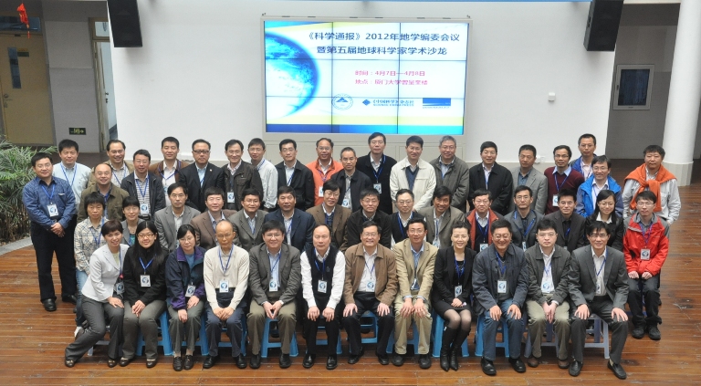 《科学通报》2012年地学编委会议暨第五届地球科学家学术沙龙于2012年4月7-8日在厦门大学曾呈奎楼举办。这次会议由国家自然科学基金委员会和《中国科学》杂志社联合主办,厦门大学近海海洋环境科学国家重点实验室承办。国家自然科学基金委员会地球科学部常务副主任柴育成、《科学通报》副主编郑永飞和郭正堂、厦门大学近海海洋环境科学国家重点实验室主任戴民汉为本次会议的召集人。《科学通报》编委均为活跃在科研第一线的中青年地球科学家,我实验室戴民汉和李炎为现任编委。参加本次会议的代表共44人,中国科学杂志社5人。