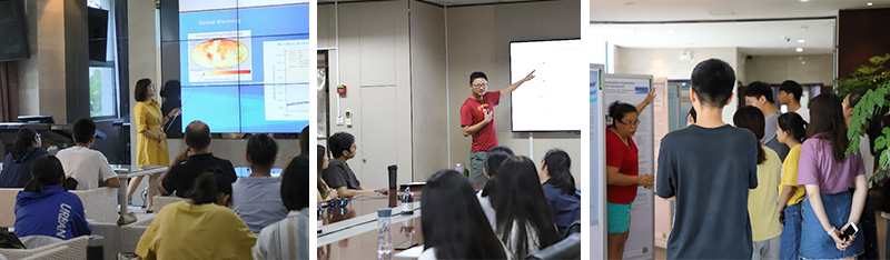 从7月17日开始的4周时间里,工作委员会邀请了多位不同研究领域的专家进行了一系列的学术讲座,让参加项目的学生更好地多方面了解厦门大学海洋学科的研究。7月17日,冯媛媛副教授向同学们进行了主题为“全球气候变化和海洋颗石藻”的讲座。7月18日,游伟伟副教授向同学们进行了主题为“贝类水产养殖适应不断变化的海洋”的讲座。之后科普专员Emily King进行了“如何让你的学术海报脱颖而出”的讲座,同时以去年的学生海报为例,向学生们阐述制作学术海报的要点。7月19日,姜海波副教授向同学们进行了主题为“浮游植物适应铁的不同策略以及在时间和空间尺度上的不足”的讲座。7月23日,高坤山教授为同学们进行了主题为“海洋光合作用和光生物学”的讲座。7月26日,张文舟副教授为同学们进行了主题为“海洋对北太平洋西部台风的响应”。8月8日,林柏岸助理员为同学们进行了主题为“吃海鲜,背后的小故事”的讲座,向同学们介绍了水产捕捞和养殖的相关研究现状。