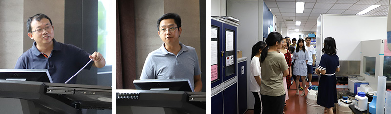 左:项目主席罗亚威副教授进行项目及学科介绍 中:林智勇工程师进行实验室安全教育与仪器操作简介 右:杨听林高级工程师带领学生参观实验室