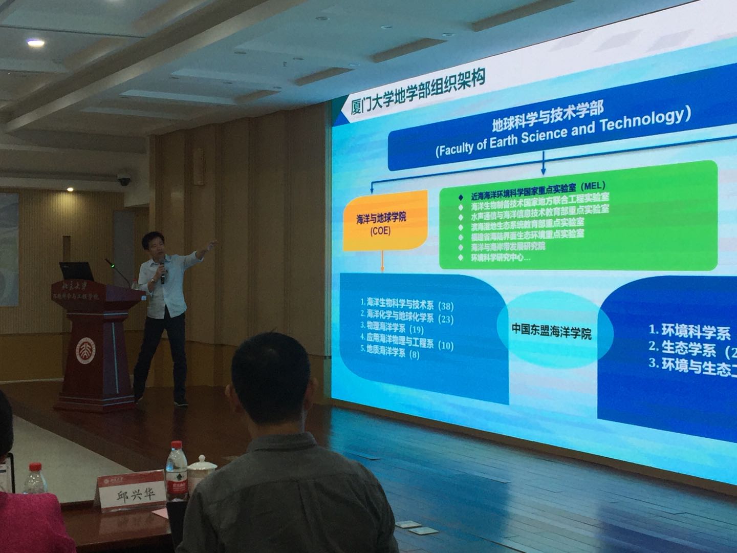 5月8日,受北京大学海洋研究院及环境科学与工程学院邀请,我实验室赴北京大学进行访问交流。北京大学科研部周辉部长、环境科学与工程学院院长朱彤教授、海洋研究院副院长郑玫教授以及物理学院、化学与分子工程学院、城市与环境学院、工学院等相关学院院领导、优秀青年教师和学生代表,我实验室戴民汉院士、史大林教授、汪冰冰教授、曹知勉副教授及三位博士生参加座谈交流会。自然资源部第二海洋研究所卫星海洋动力学国家重点实验室柴扉主任率领的团队也一同参加了座谈交流。
