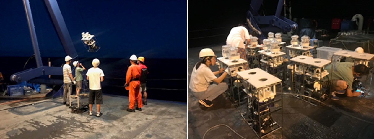 本次GEOTRACES-CHINA西太平洋航次每个站位均投放多次常规CTD,满足了不同研究小组对不同指标的海水样品需求。据统计,常规CTD采水参数包括溶解氧(DO)、营养盐(N,P,Si)、溶解无机碳(DIC)和溶解有机碳(DOC)浓度等基本水化学浓度参数,以及Δ14C, δ18O, δ2H, δ15N, 234Th, 144Nd/143Nd, 230Th, 135Ba / 138Ba, 210Po / 210Pb等同位素指标;同时所采集水样还用于初级生产力、固氮速率等甲板培养实验。参与单位包括厦门大学、自然资源部第二海洋研究所、中国海洋大学和北京大学。