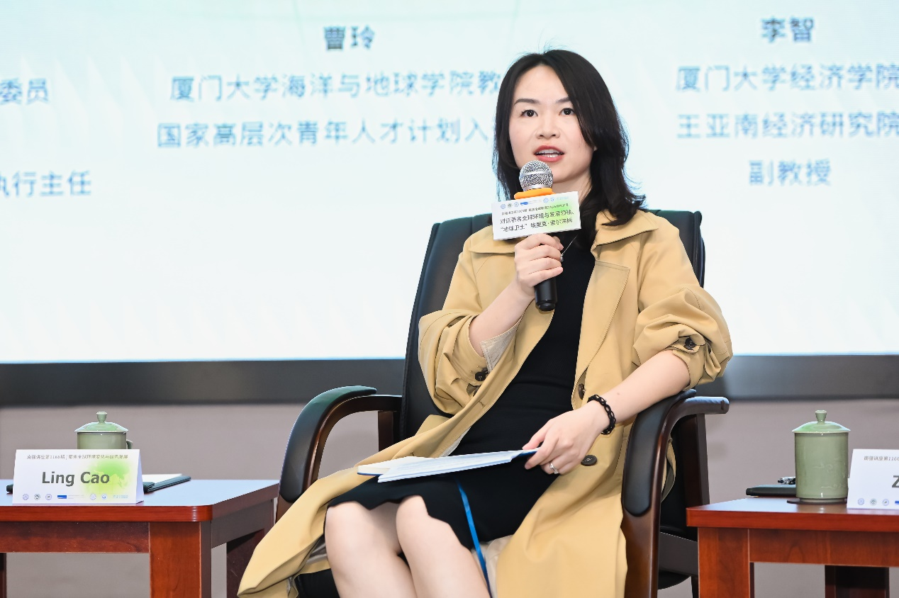 在南强讲座的第二部分,索尔海姆与来自厦门大学地球科学与技术学部的戴民汉教授、吕永龙教授、曹玲教授以及经济学院/王亚南经济研究院的李智副教授共同进行高端对话。嘉宾们围绕科技创新对应对环境挑战并推进可持续发展的贡献、“一带一路”倡议对全球生态环境可持续发展的影响、后疫情时代的经济恢复与绿色发展、青年人才如何参与全球绿色与可持续发展等若干话题开展了全面深入的讨论。