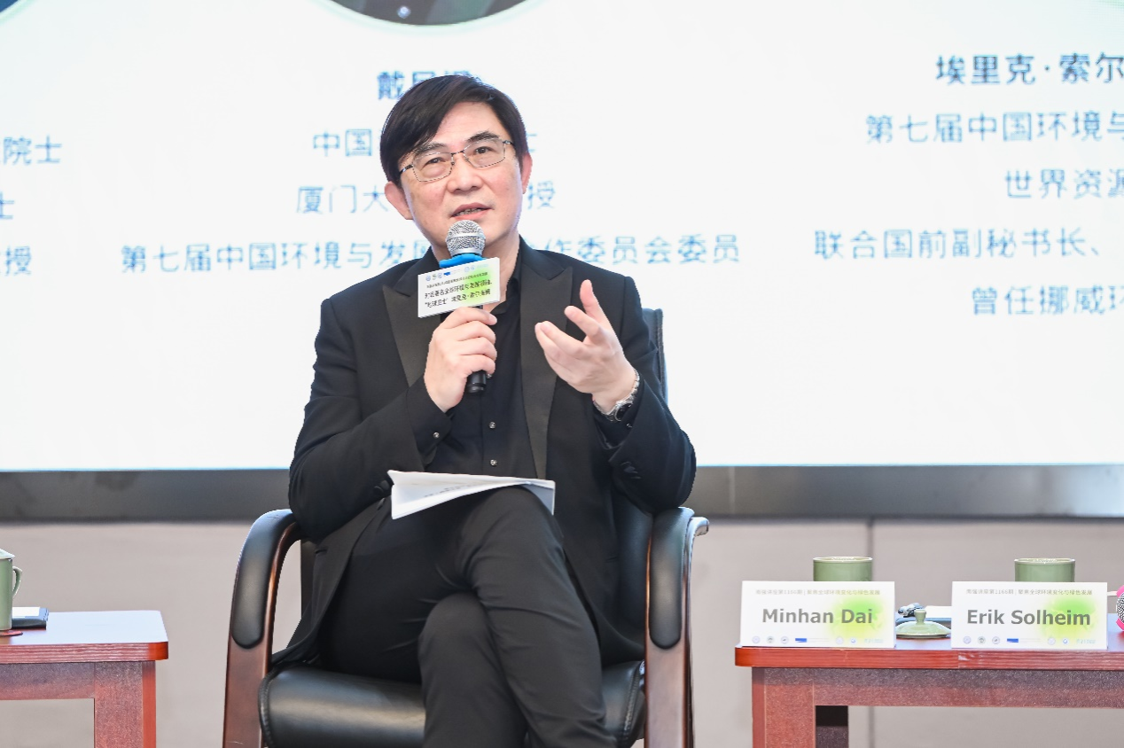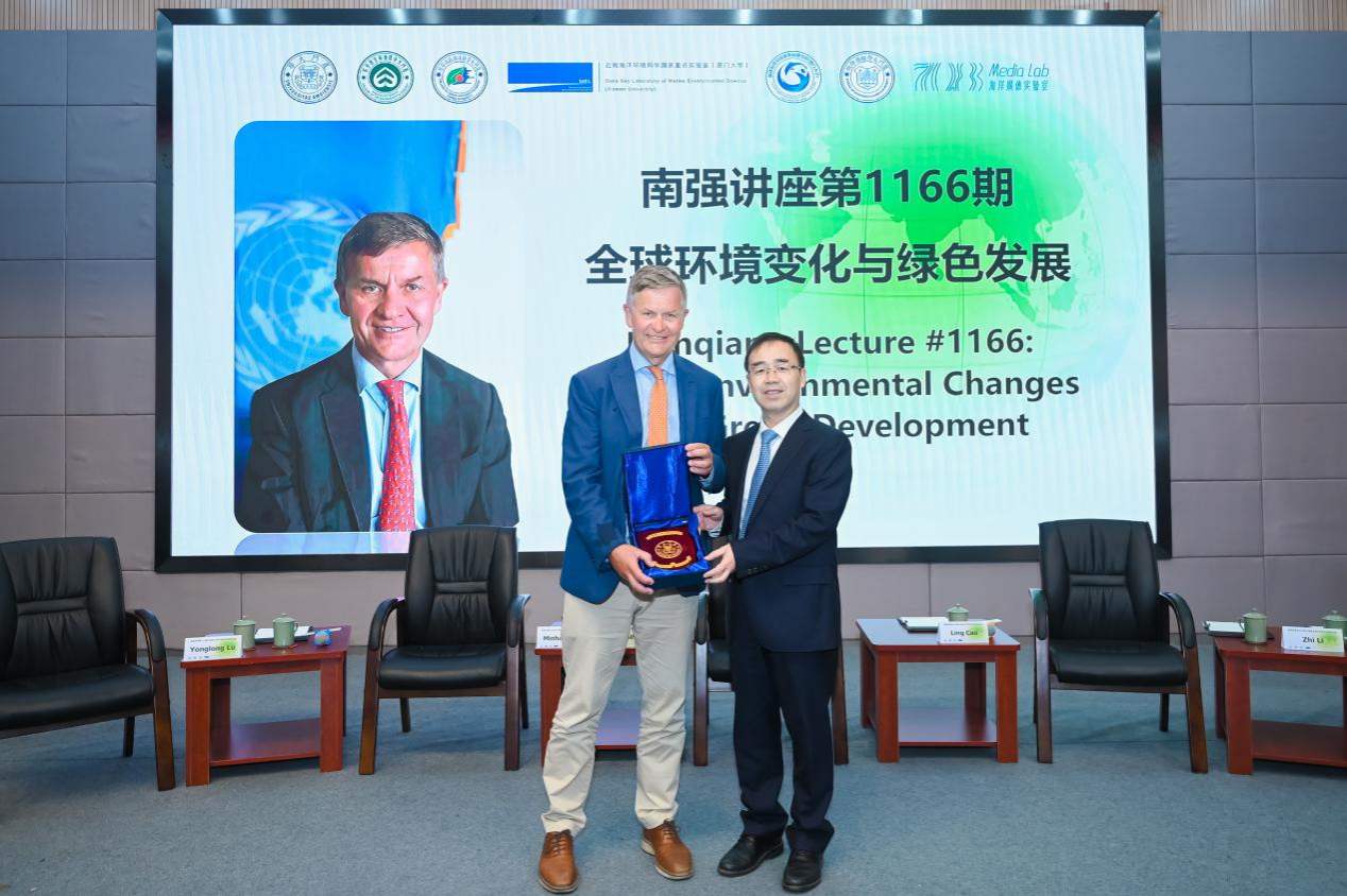 2023年4月12日下午,应中国科学院院士、厦门大学地球科学与技术学部主任戴民汉教授的邀请,著名的全球环境与发展领袖、联合国环境保护领域最高奖——“地球卫士奖”获得者埃里克·索尔海姆(Erik Solheim)先生,在厦门大学翔安校区德旺图书馆二号报告厅为厦门大学广大师生带来主题为《全球环境变化与绿色发展》的第1166期南强讲座。同时,主办方还邀请了四位专家学者围绕“全球生态环境可持续发展的前景与路径”进行了一场高端对话,并就全球青年人才——尤其是中国青年如何贡献智慧与力量助力全球环境可持续发展进程进行了深入且热烈的讨论。讲座由发展中国家科学院/欧洲科学院/俄罗斯科学院院士、环境与生态学院院长吕永龙教授主持,全校共有200余名师生参加。