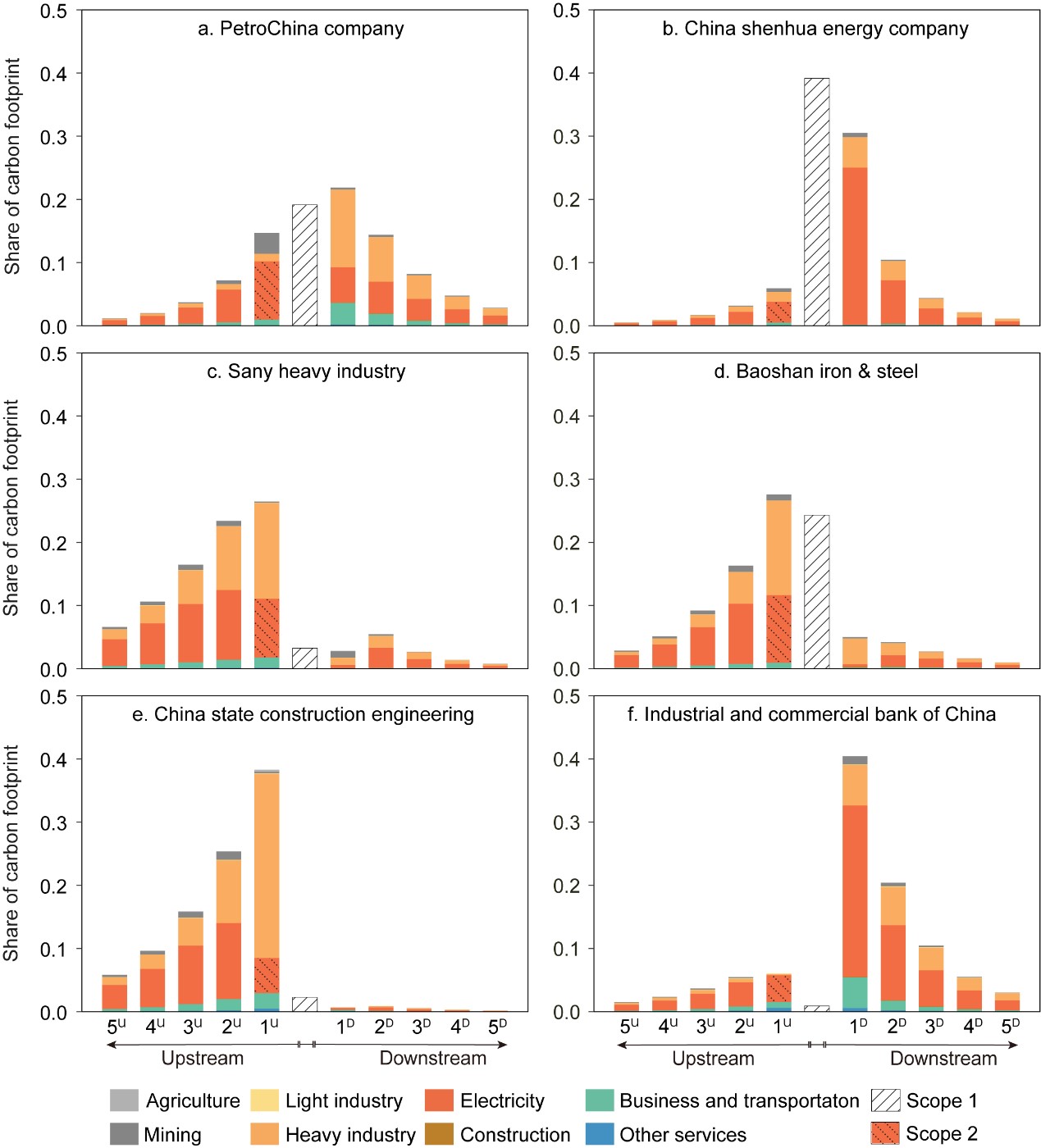 基于此方法,研究创新性地评估了各企业的范围三碳排放在不同层级供应商和下游消费者的部门分布特征。
