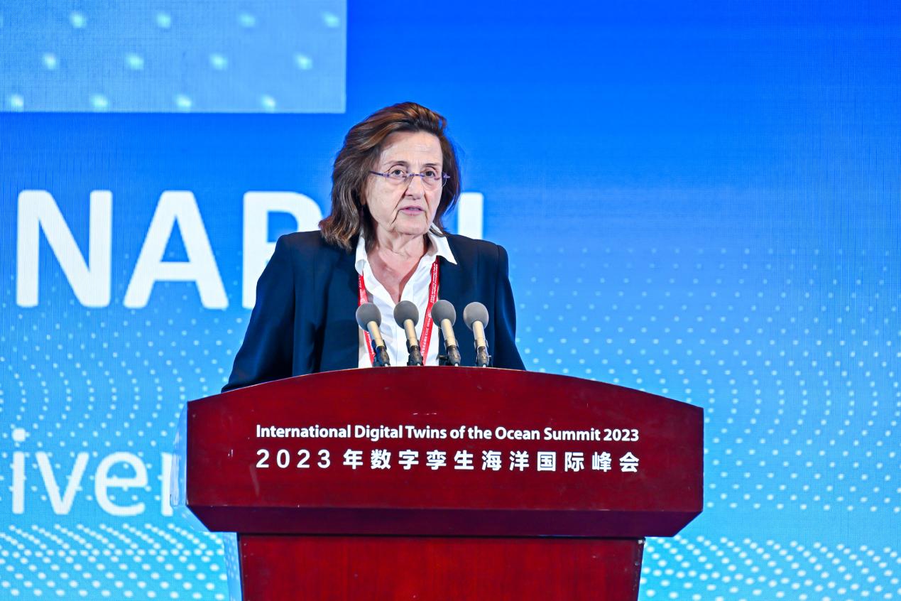 Nadia Pinardi教授表示应用性海洋学和海洋数字孪生技术为弥合学术界与社会之间的鸿沟提供了独特的机会。她认为,依托先进技术和最新科学研究,人类可更深入地了解海洋这一连通且复杂的系统,助力人海和谐共生的实现。她还在主旨报告中展示了其研究团队为解决海洋管理问题及提高沿海抗灾能力等而研发的数字孪生海洋应用系统。