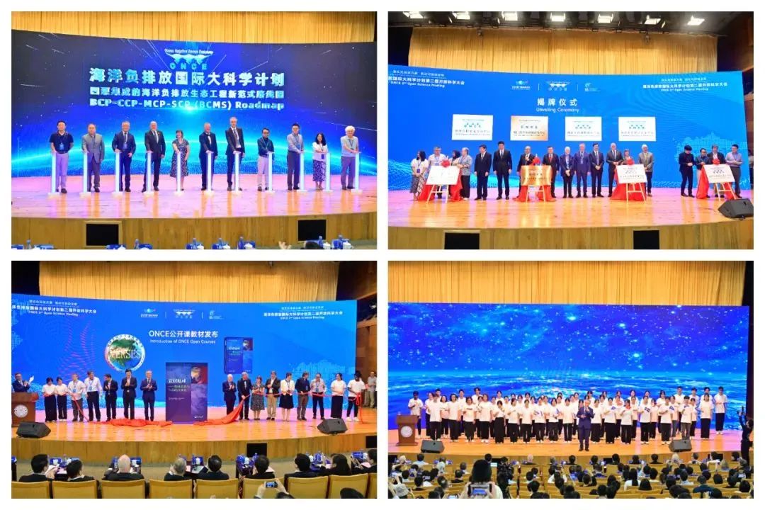 随后举行了ONCE计划系列成果发布仪式。会上发布了ONCE-BCMS路线图、OLAR期刊的ONCE专题、ONCE公开课教材——《宜居地球——地球系统与生命的共演化》,为厦门海洋负排放研究中心、海洋负排放欧洲分中心、海洋负排放泛美分中心及海洋负排放亚洲分中心四个推进机构揭牌,并举行了国际标准化组织海洋负排放与碳中和直属工作组成立仪式。成果发布仪式最后,焦念志院士带领厦门大学学生合唱团,为大家带来悠扬婉转的ONCE主题歌。