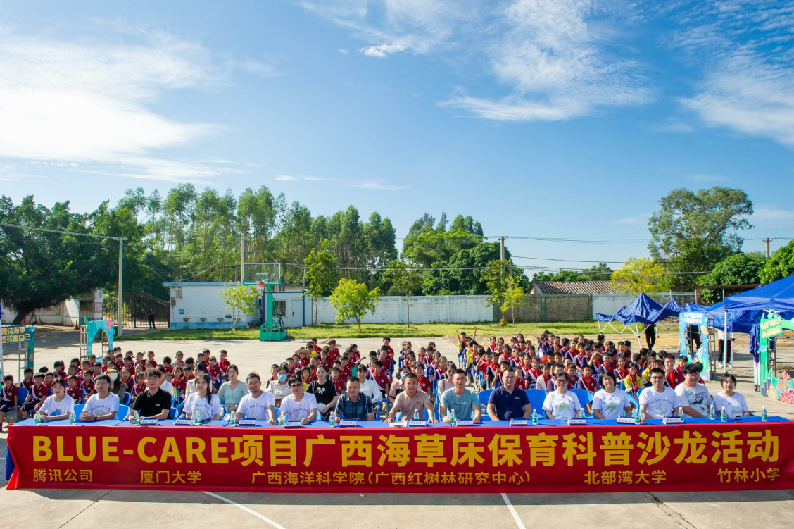 近日,厦门大学、广西海洋科学院(广西红树林研究中心)于北海市银海区福成镇竹林小学联合主办了一场海草床保育科普活动。来自厦门大学、广西海洋科学院(广西红树林研究中心)、北部湾大学的6位学者与竹林小学200多位师生们一起,揭开海草床鲜为人知的一面。