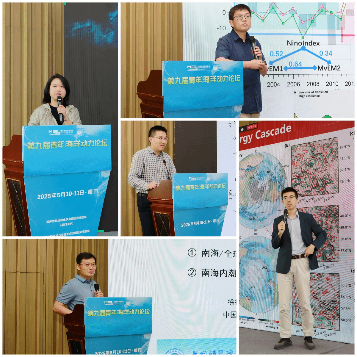 2025年5月10日至11日,由厦门大学海洋生物地球化学全国重点实验室(以下简称“MEL”)与热带海洋环境与岛礁生态全国重点实验室(中国科学院南海海洋研究所)共同主办的第九届青年海洋动力论坛在厦门召开。此次论坛由厦门大学刘志宇教授与中国科学院南海海洋研究所张磊研究员共同担任召集人,美国伍兹霍尔海洋研究所黄瑞新研究员,香港科技大学甘剑平教授,中国科学院南海海洋研究所王春在研究员、杜岩研究员,中国海洋大学田纪伟教授、林霄沛教授,复旦大学王桂华教授、杨海军教授,厦门大学薛惠洁教授等9位资深学者应邀担任点评专家,来自全国18所高校和科研院所的45位青年学者应邀参会。