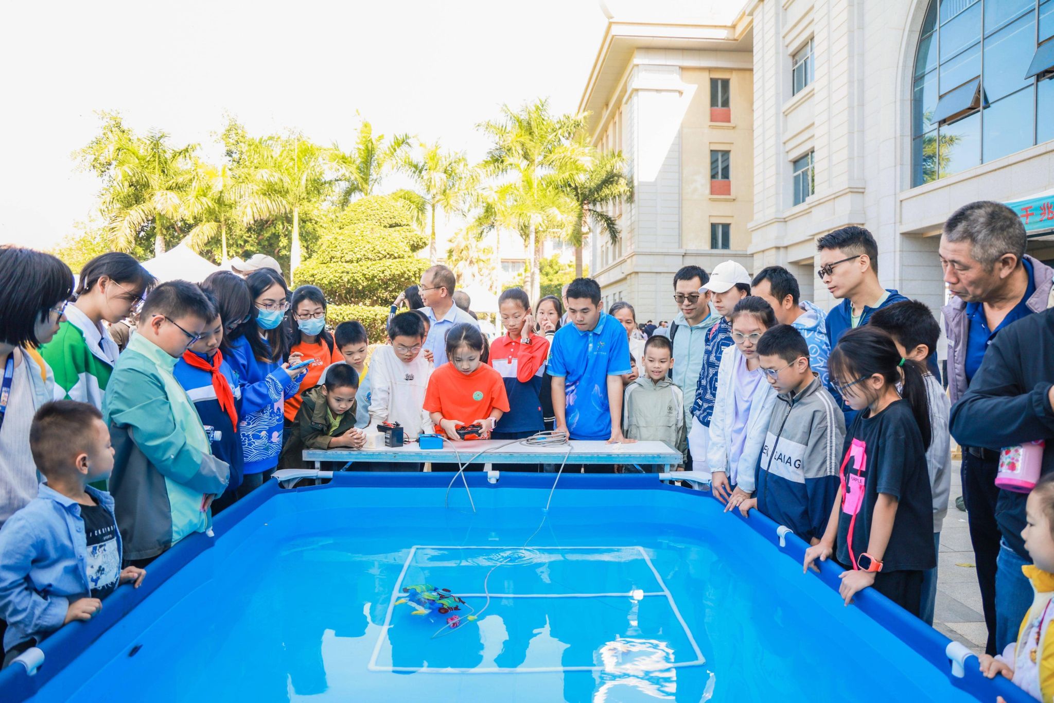 本次开放日创新打造青少年水下机器人挑战赛,吸引了来自多个学校的中小学生同台竞技。参赛选手们操控水下机器人,完成水下抓取、转移目标等任务,活动现场气氛热烈。赛事还为参赛中小学生设置水下机器人技术讲座指导,激发青少年对海洋科技的探索热情,激励他们在海洋工程技术领域大胆创新、积极实践。