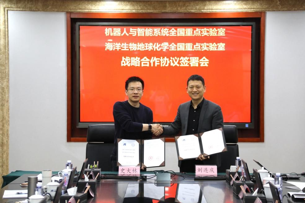 厦门大学副校长、海洋生物地球化学全国重点实验室主任史大林,沈阳自动化所副所长、机器人与智能系统全国重点实验室副主任刘连庆致辞,并代表双方实验室签署战略合作协议。