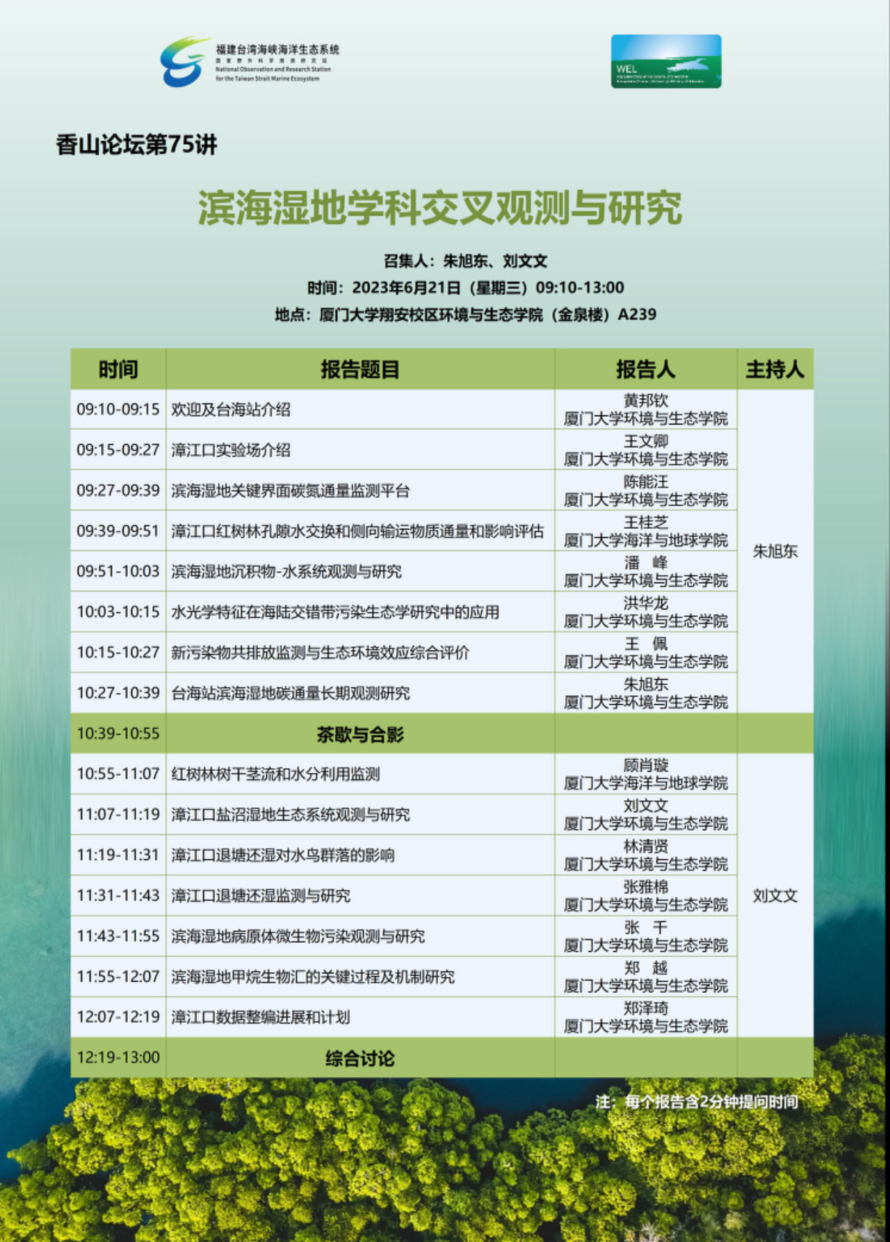 本期论坛以“滨海湿地学科交叉观测与研究”为主题,欢迎广大师生来面对面交流,报道研究进展,凝练科学问题,激发创新思维,以此促进跨学科交叉合作与野外站建设,产出高水平研究成果。