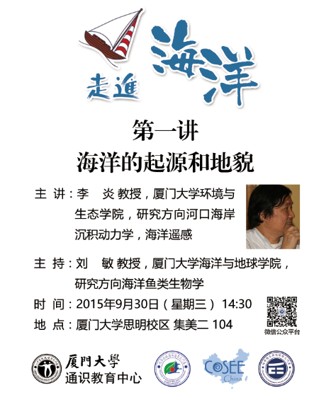有关“走进海洋”系列讲座的更多讲座信息请见公众开放栏:http://mel.xmu.edu.cn/supervisefile.asp?id=565