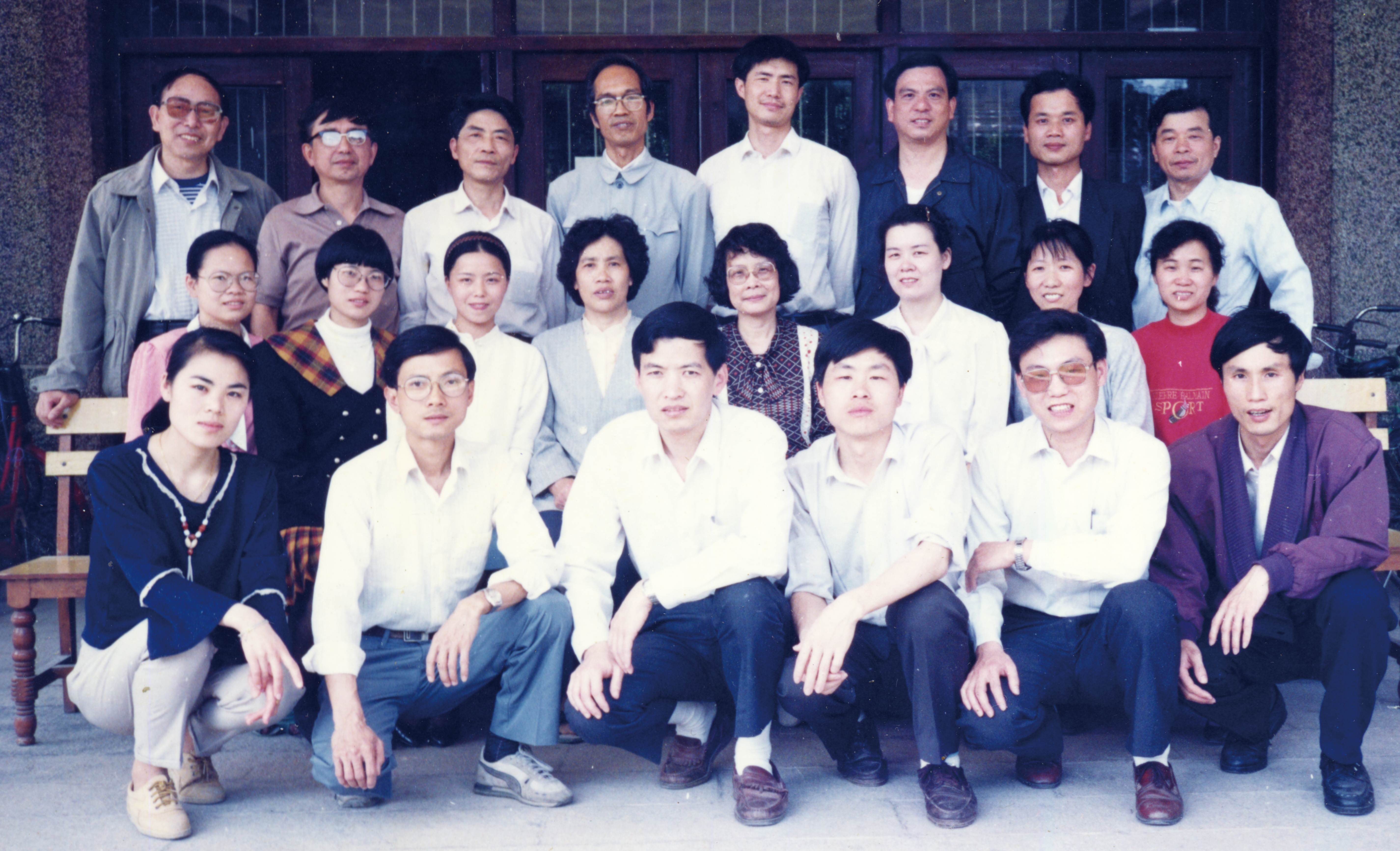 (第一排左起:彭荔红、郑逢中、张珞平、黄邦钦、薛雄志、郑文教;第二排左起:林庆梅、洪丽玉、林鸣红、方金妹、洪华生、李云霞、袁东星、吴兵;第三排左起:郑微云、林良牧、曹守镜、李玉桂、黄建东、卢昌义、郑天凌、王隆发)