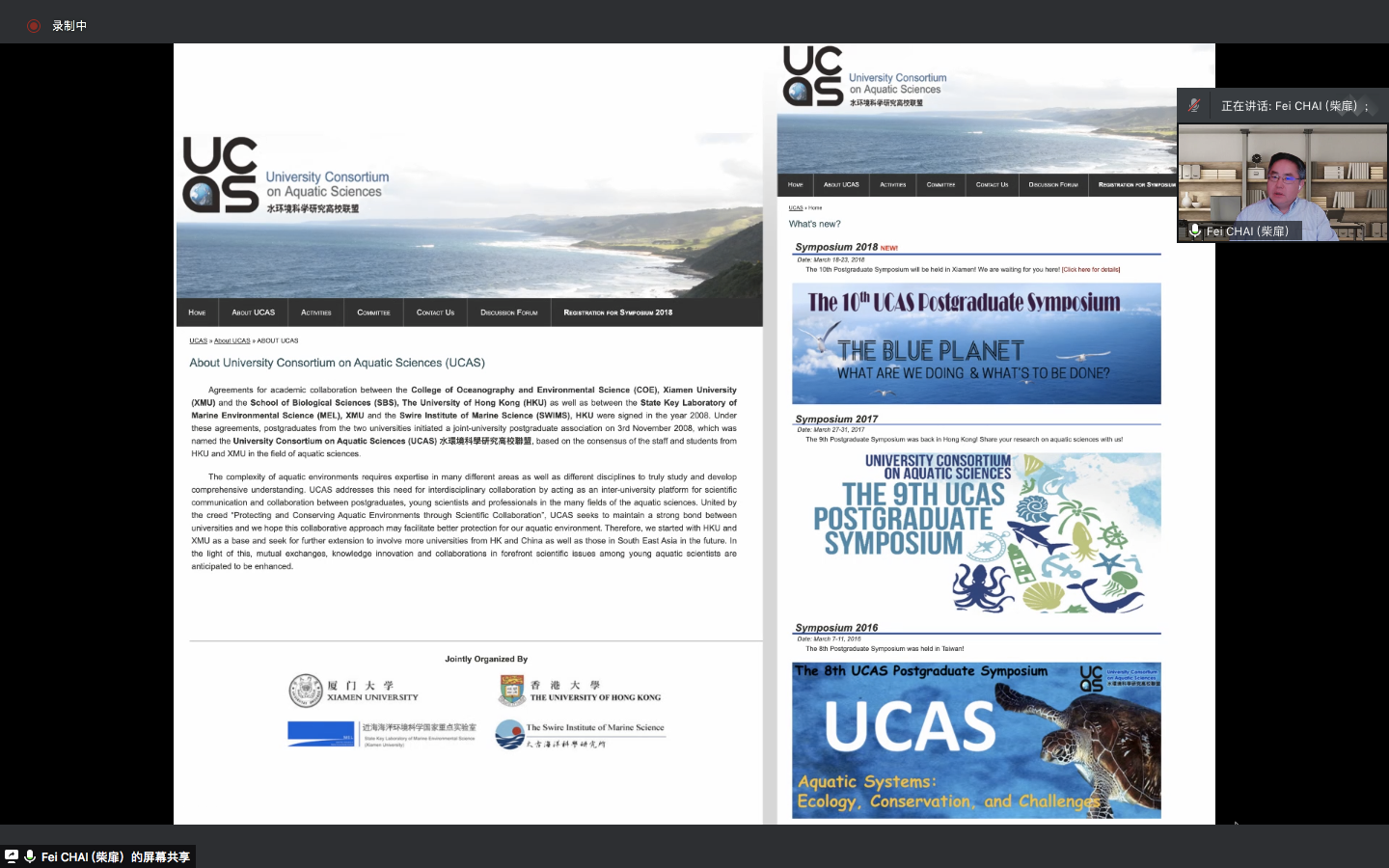 2021年4月19日上午9时,由近海海洋环境科学国家重点实验室(MEL)研究生发起并主办的第十三届水环境科学高校联盟(University Consortium on Aquatic Sciences, UCAS)研究生研讨会于厦门大学翔安校区周隆泉楼开幕。