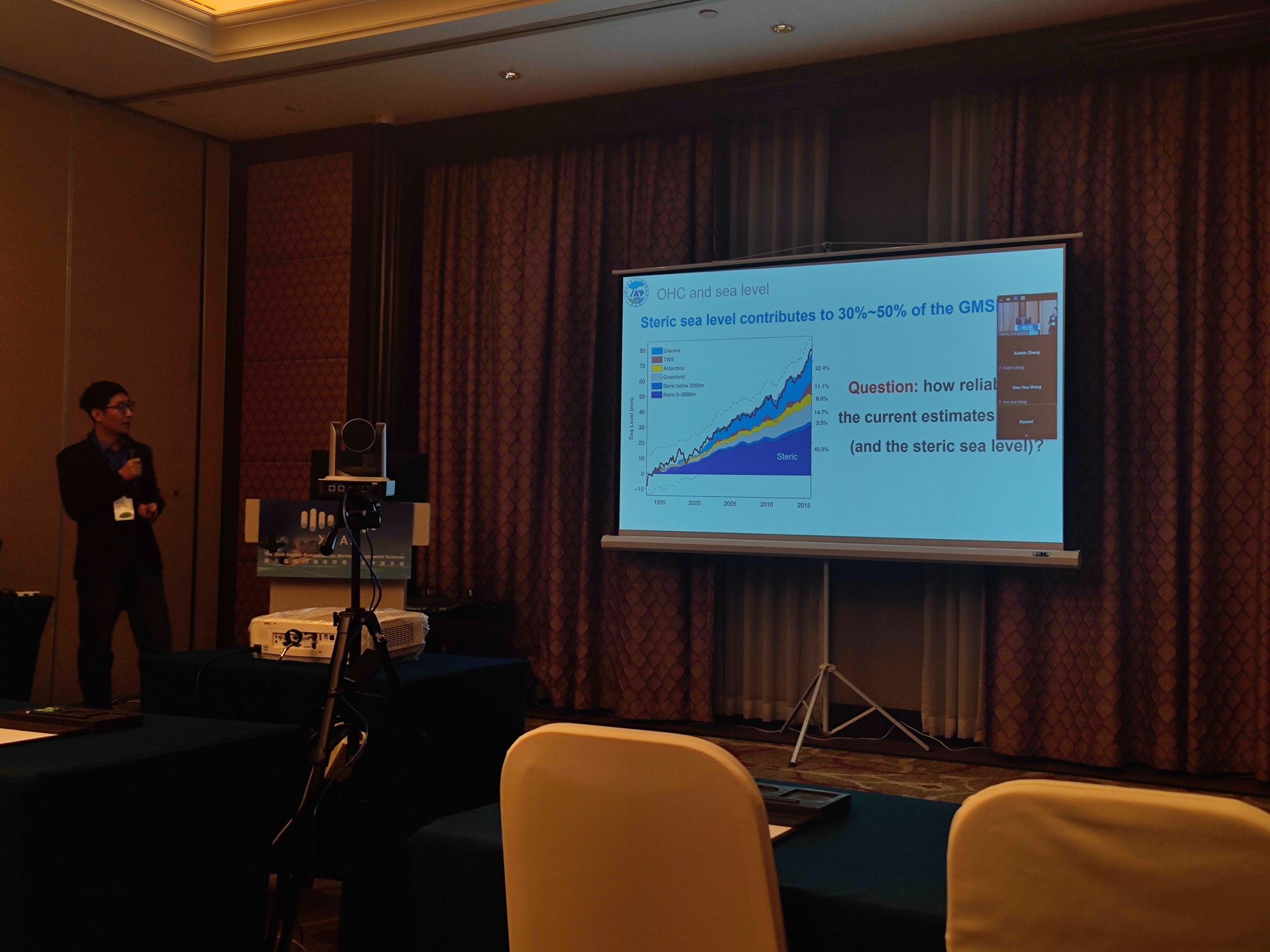 中科院大气物理研究所的成里京研究员的报告《海洋热含量和比容海平面变化的估算》分享了通过数据订正、质量控制和改进数据格网化方法等手段,对比容海平面有了更稳健的估算。在全球变暖的背景下,全球平均海平面高度持续上升,对比容海平面变化的准确估算是理解气候变化背景下全球海平面变化的关键所在。