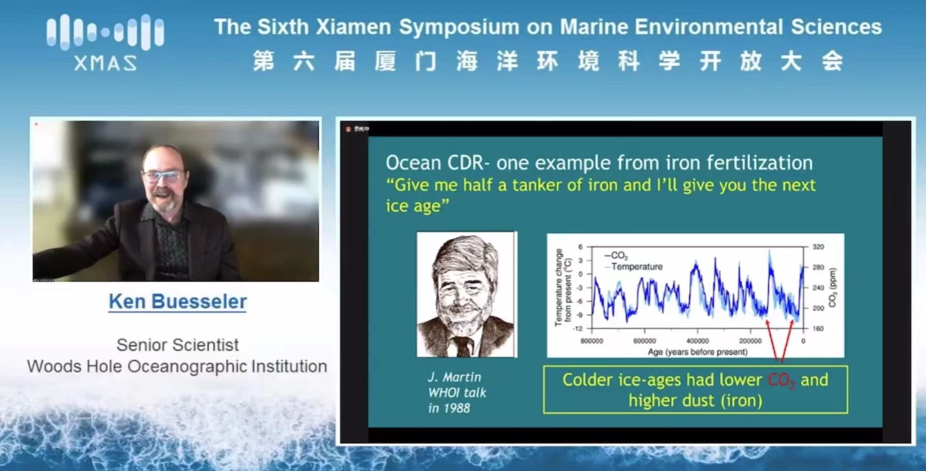 美国伍兹霍尔海洋研究所资深研究员Ken Buesseler关心向海洋施“铁肥”以增加海洋碳汇,带来题为《铁施肥等海洋碳移除方案》的研究报告。