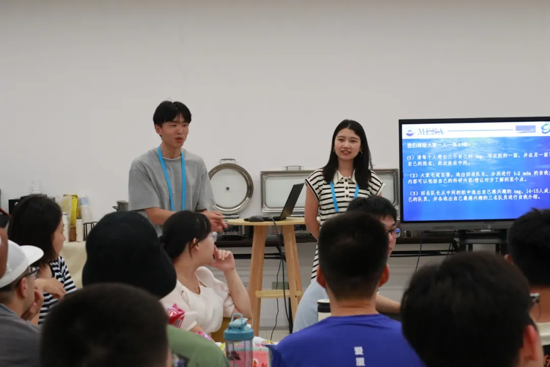 7月17日晚,全体与会同学参与了破冰活动,通过展示个人Tag、共绘队旗、“你HUA我猜”、“夹气球折返跑”等轻松愉快的环节及游戏拉进了彼此之间的距离。