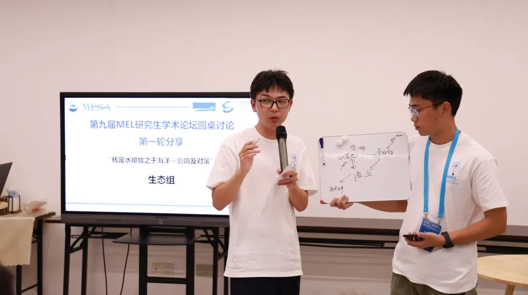 18日晚,师生们就“核废水排放之于海洋—影响及对策”主题开展圆桌讨论。第一轮组内讨论环节中,同学们从自身专业出发,剖析了核废水排放对海洋产生影响的机理过程,并以物理、化学、生物、生态四大组为单位从水动力及遥感监测、化学扩散与稀释、生态系统的风险评估、生物代谢积累过程及毒理性研究等角度作初步汇报。